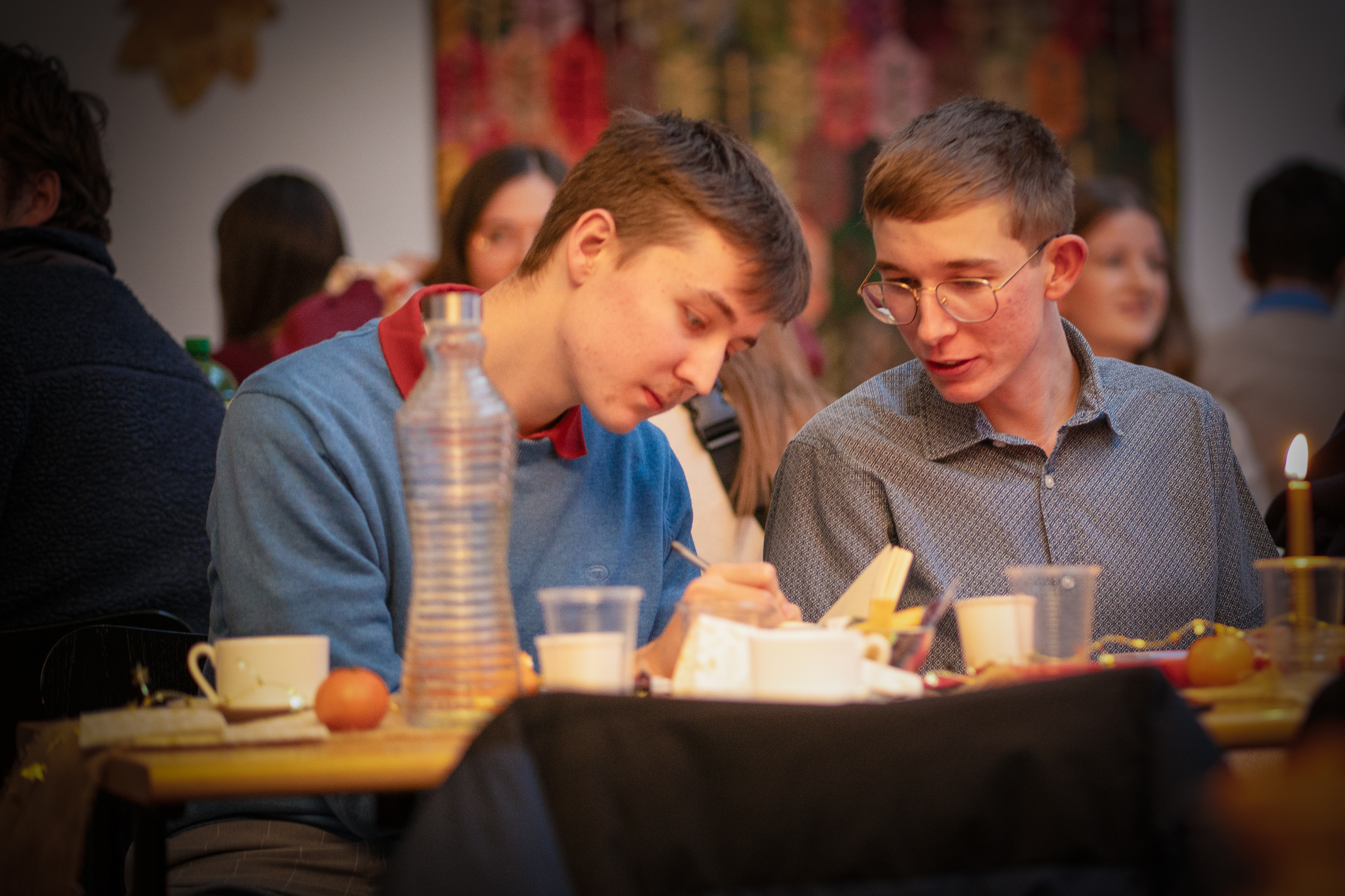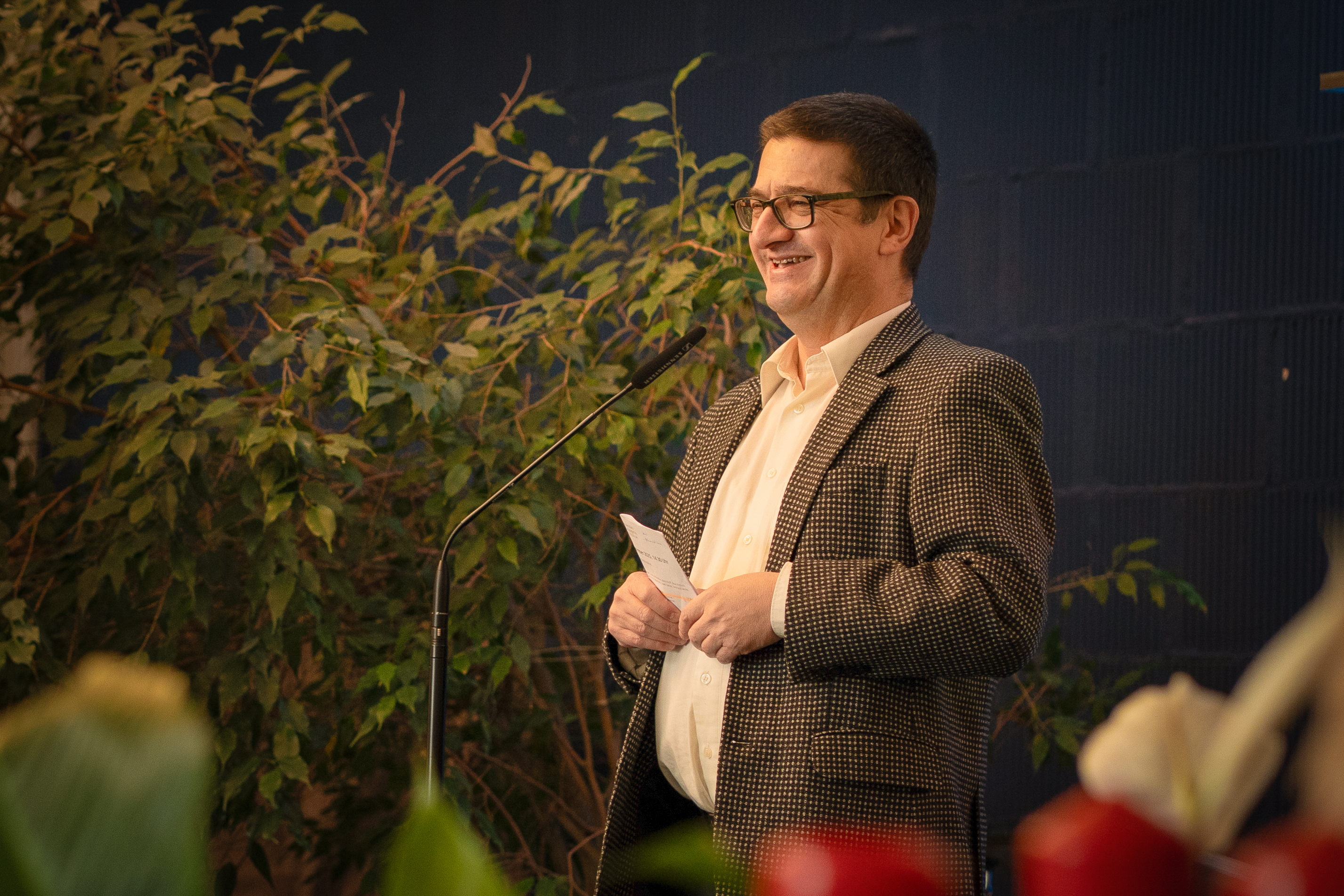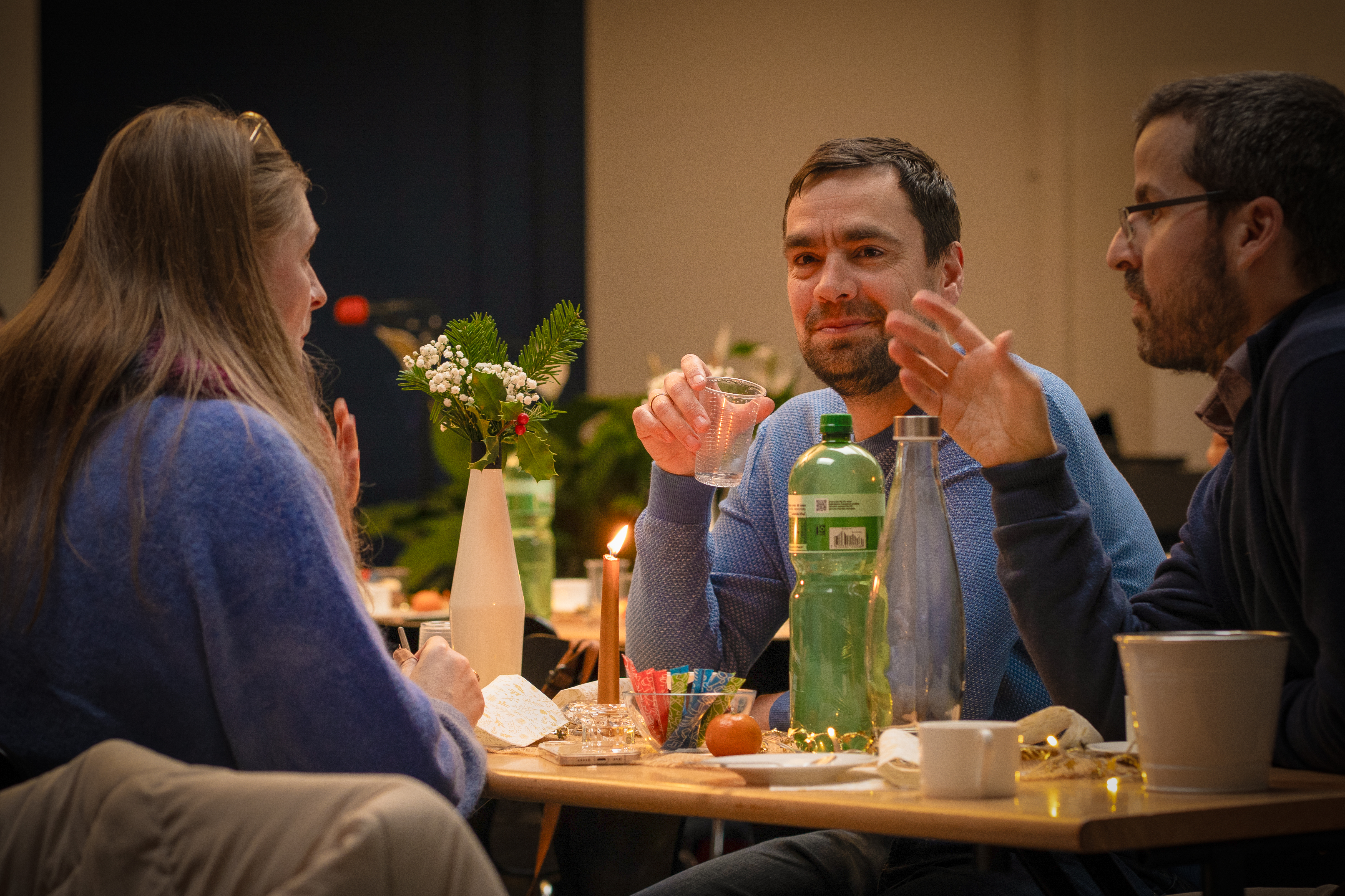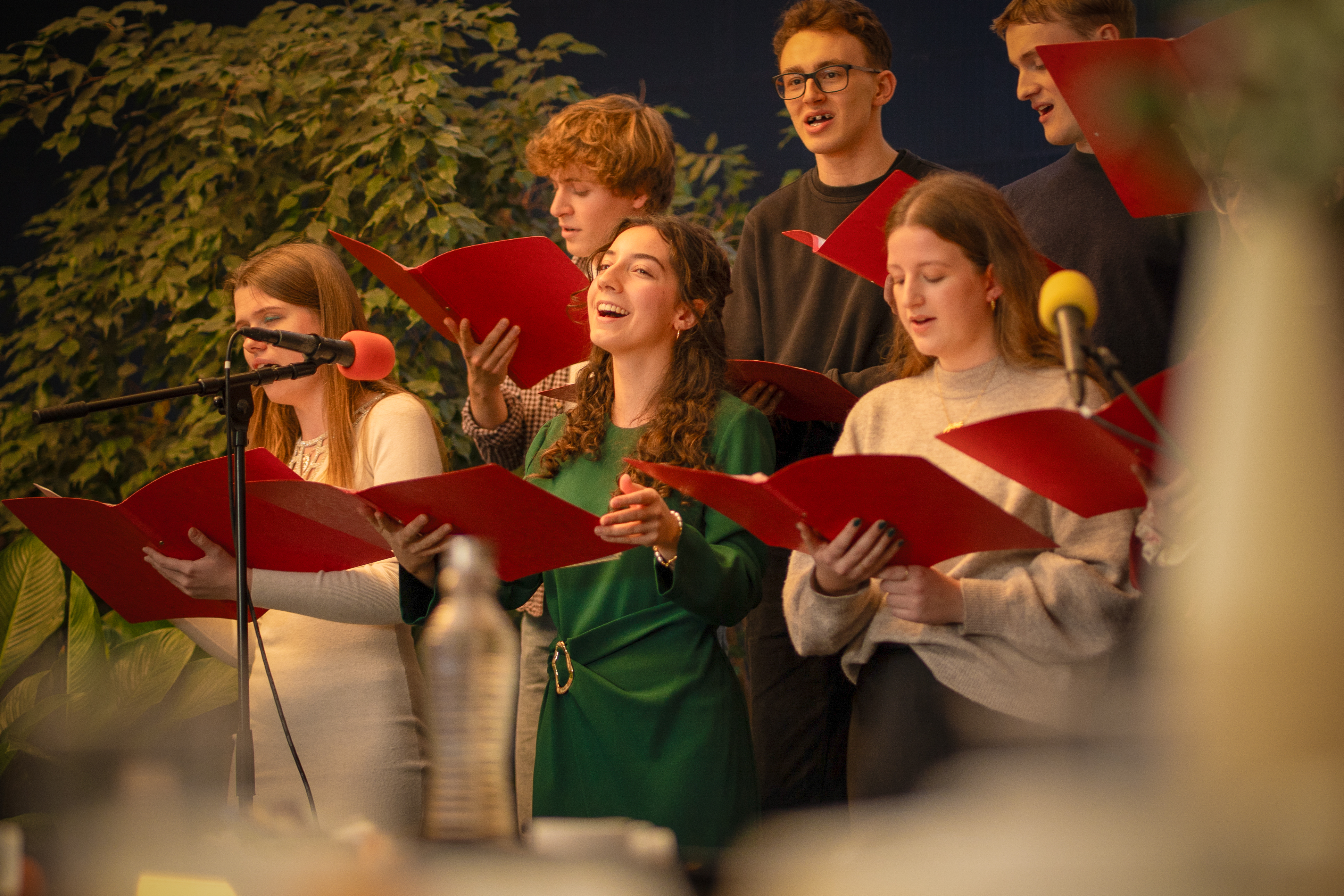 In warmer Adventsstimmung kamen am 5. Dezember 2025 im Cafe Prisma rund 110 Gäste aus dem Umfeld unserer Hochschule zusammen, um das Jahr 2025 gemeinsam und dankbar ausklingen zu lassen. Bei leckerem Punsch und vielen persönlichen Gesprächen bereicherten die neuen Studierenden den Nachmittag mit einer lebendigen Vorstellung auf der Bühne.