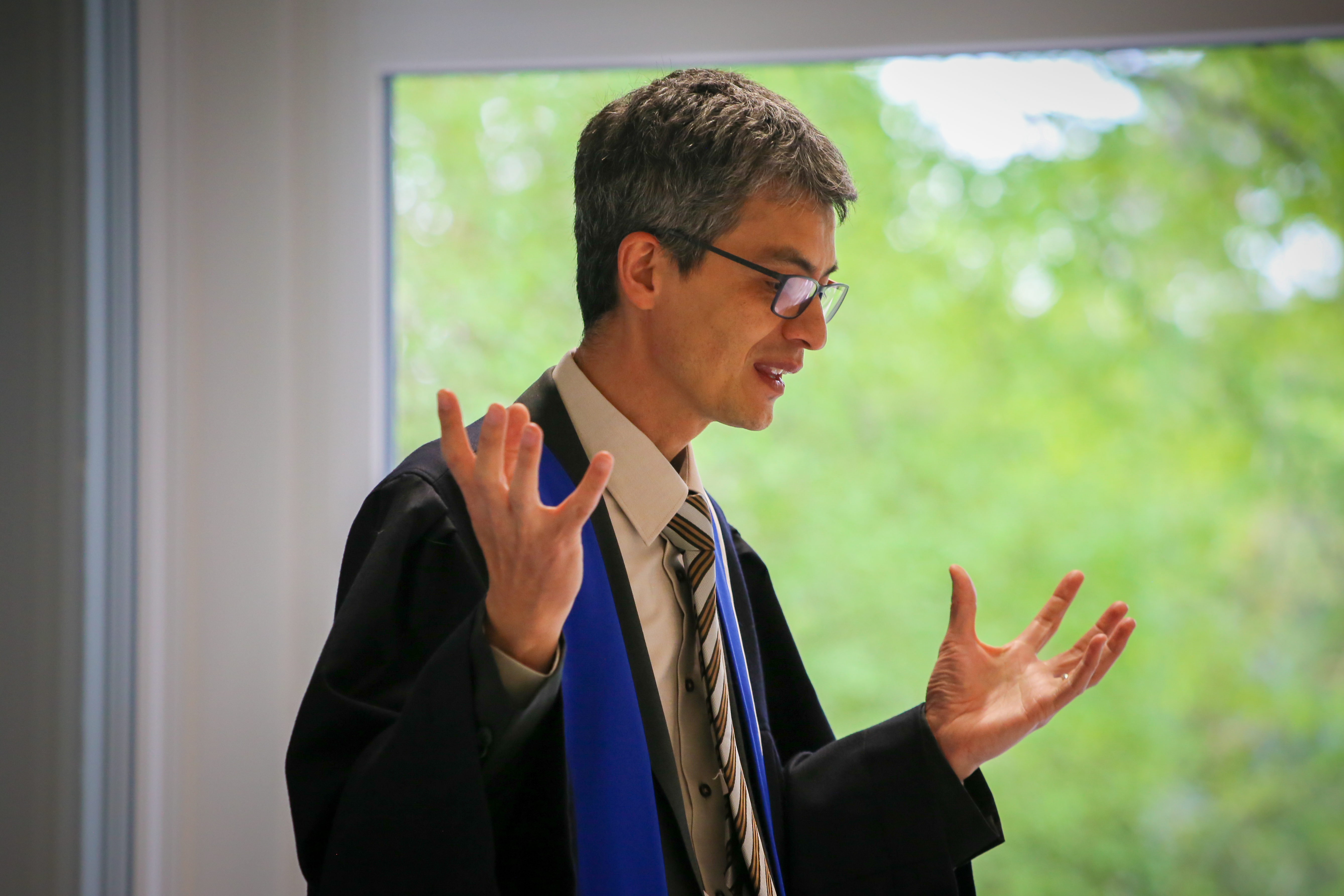 Christopher Hadisaputro bei der Verteidigung seiner Doktorarbeit.