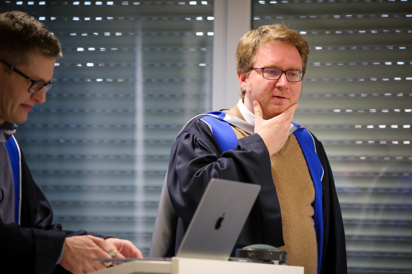 Pascal Tobler legte – begleitet von seinen beiden Betreuern – einen weiten Weg von eher dogmatischen Anfängen bis zu einer stark exegetisch fokussierten Arbeit zu einer deutlich exegetisch profilierten Untersuchung zurück. In der „Verteidigung“ ging er überzeugend auf methodische und sachliche Einwände ein. Vor der Verteidigung fand das nicht öffentliche Rigorosum (die Doktorprüfung) statt. Dabei war Neues Testament Hauptfach; als Nebenfächer hatte Herr Tobler Systematische Theologie sowie Philosophie, Religions- und Missionswissenschaft gewählt.